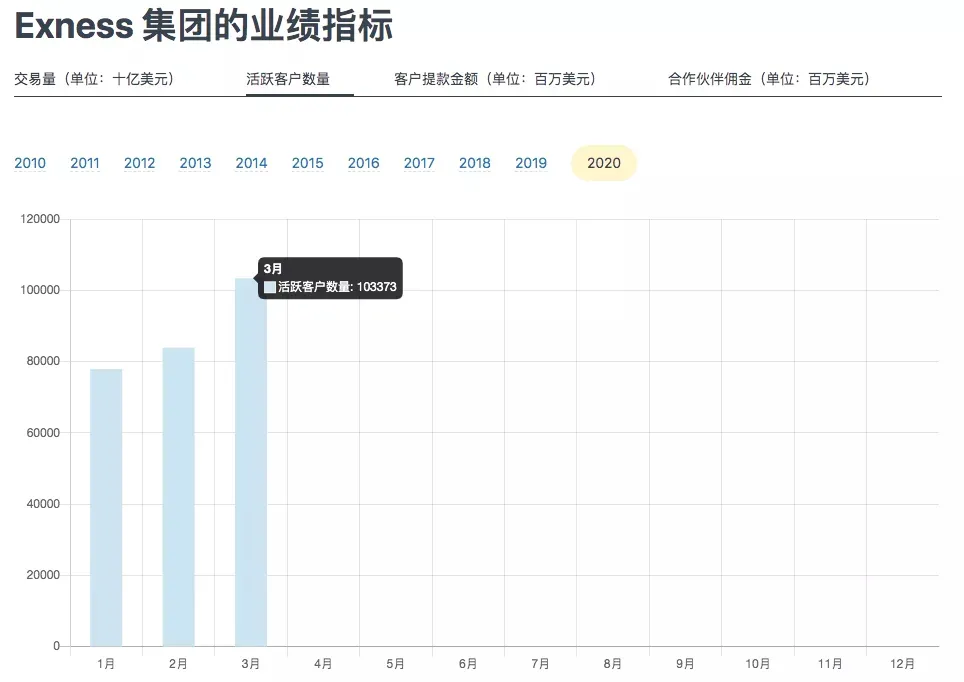 Exness集团财报• 近日,Exness集团在官方网址(www.exness-888.com)上公布了2020年3月份交易量数据、活跃客户数量数据以及2020年第一季度数据。